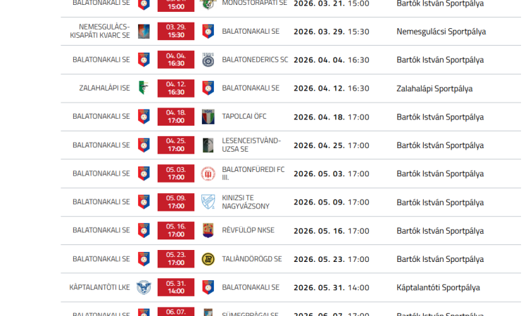 Tavasszal szinte csak hazai pályán szerepel csapatunk, mellékeljük a sorsolást is, várjuk önöket!