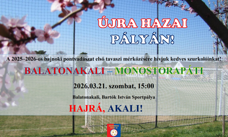 A tavaszi nyitányon Monostorapáti csapatát fogadjuk, szurkoljunk minél többen a srácoknak!